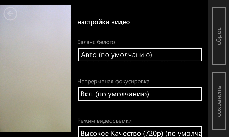 Что касается стандартного модуля, то он не отличается богатством настроек. Доступны изменение сцены, ISO, коррекция экспозиции, баланс белого, формат изображения. Для видео можно изменить баланс белого, включить постоянную фокусировку для внешней камеры или уменьшить ее разрешение. Запись ведется в формат MP4, максимальная версия имеет параметры: видео — AVC Main@L3.1, 720p30, 10,5 Мбит/с, звук — AAC, моно, 96 кбит/с. На основном экране находятся кнопки для переключения фото/видео, смены камеры и управления вспышкой. В дополнительных опциях камеры включается запись геотегов. Цифровой зум можно использовать стандартным жестом масштабирования двумя пальцами. Тестирование в Skype показало, что фронтальная камера дает немного темное изображение, но в целом вполне работоспособна в этом сценарии.
