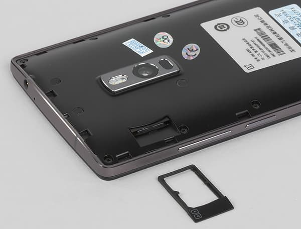 Сняв крышку, можно получить доступ лишь к одинокому разъему для SIM-карт, да и то его вполне можно было бы врезать в боковую грань, а крышку сделать несъемной. Скорее всего, такую конструкцию задумали только для того, чтобы можно было менять крышки для украшения и кастомизации собственного аппарата. В разъем SIM можно установить, в зависимости от модификации, две или одну SIM-карту формата Nano-SIM, возможности подключать карту памяти не предусмотрено.