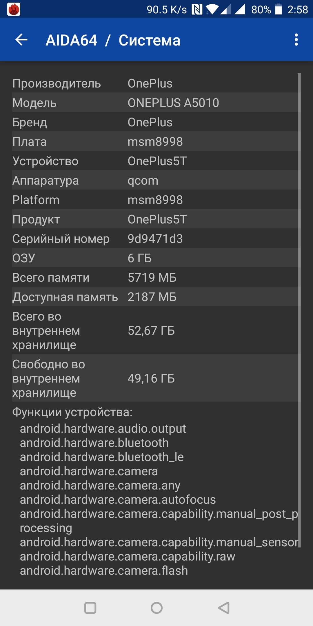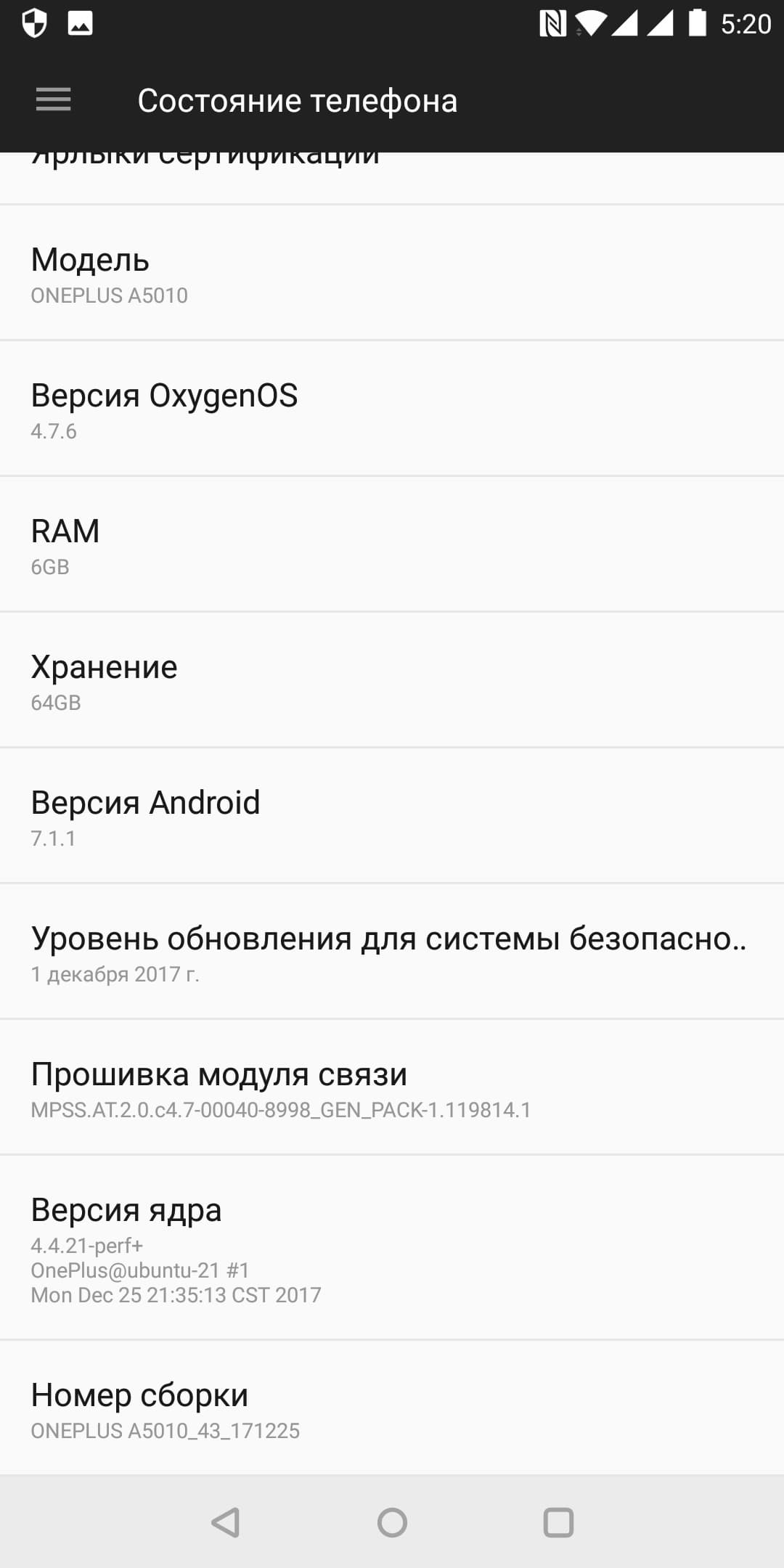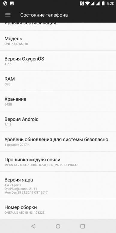 В качестве программной платформы используется ОС Android версии 7.1.1 с возможностью обновления по воздуху (ОТА). Поверх установлена новая версия собственной фирменной оболочки OxygenOS (версия 4.7.6), которая не так уж сильно отличается от предыдущей версии, c которой мы тестировали летом обычный OnePlus 5. Интерфейс легкий по оформлению и очень быстрый, быстродействие системы и мгновенное выполнение любых задач тут как-то особенно бросается в глаза.