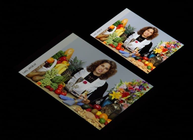 Согласно визуальной оценке, цвета у тестируемого экрана более-менее естественные, а цветовой баланс экранов немного различается. Напомним, что фотография не может служить надежным источником сведений о качестве цветопередачи и приводится только для условной наглядной иллюстрации. Фотография выше получена после выбора профиля sRGB в настройках экрана, всего их пять: