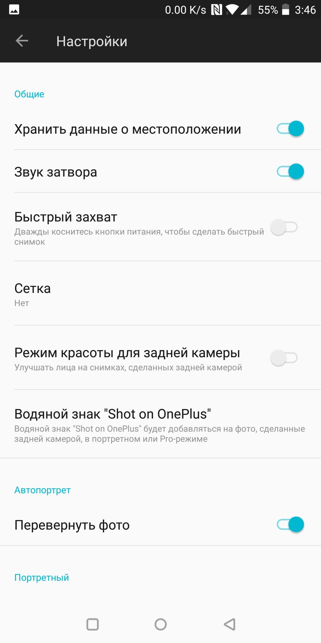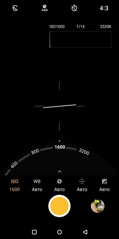 Как обычно, в настройках есть автоматический и профессиональный режимы съемки. В ручном режиме можно настраивать выдержку (от 1/8000 до 30 с), светочувствительность (до ISO 3200), баланс белого и экспокоррекцию. Есть возможность ориентироваться на гистограмму и сохранять снимки в RAW.