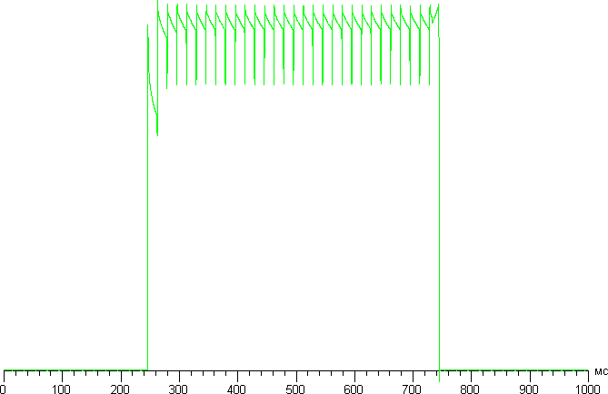 Переключение состояния элементов матрицы выполняется практически мгновенно, но на фронте включения (и реже — выключения) может присутствовать ступенька шириной примерно 17 мс (что соответствует частоте обновления экрана). Например, так выглядит зависимость яркости от времени при переходе от черного к белому и обратно: