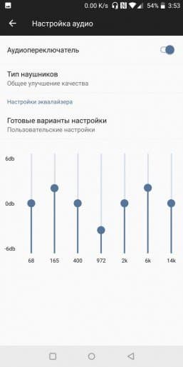 Основной динамик глубиной и мощью звучания не поражает. Звук он выдает неплохой, но, конечно, с флагманами, у которых используется теперь по два динамика в стереопаре, OnePlus 5T тягаться не по силам. В наушниках примерно та же ситуация: звук в целом неплохой, но это не максимальный уровень и не решение для меломанов. Отметим, что Bluetooth-контроллер смартфона поддерживает аудиокодеки aptX и даже aptX HD. У нас под рукой для проверки оказались только AirPods, а они поддерживают лишь стандартные Bluetooth-аудиокодеки, но и с базовым кодеком SBC наушники очень неплохо играли тестовые мелодии, и главное, что смартфон быстро и безошибочно «спаривается» с беспроводными наушниками. Для нетребовательного уха возможностей OnePlus 5T хватит с лихвой. Для проигрывания музыки смартфон использует стандартный проигрыватель Google Play Music с семиполосным эквалайзером и несколькими пресетами.