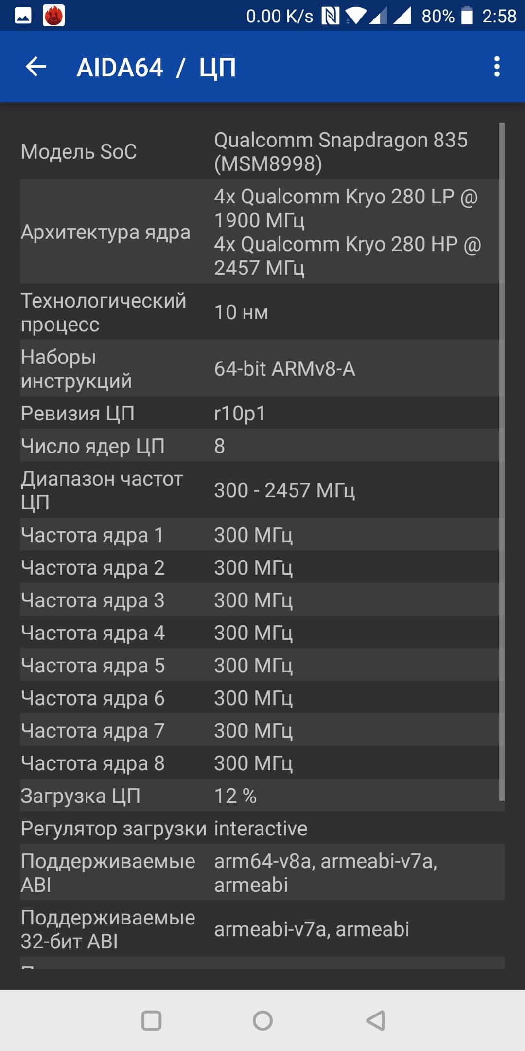 - SoC Qualcomm Snapdragon 835, 8 ядер Kryo 280 @1,9/2,4 ГГц