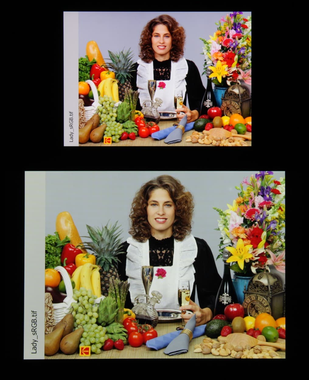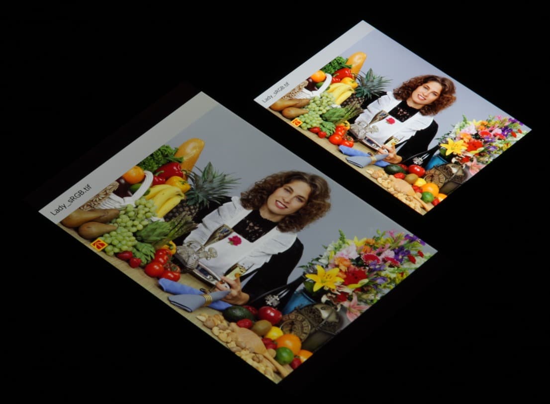Согласно визуальной оценке, цвета у тестируемого экрана более-менее естественные, а цветовой баланс экранов немного различается. Напомним, что фотография не может служить надежным источником сведений о качестве цветопередачи и приводится только для условной наглядной иллюстрации. Фотография выше получена после выбора профиля sRGB в настройках экрана, всего их четыре: