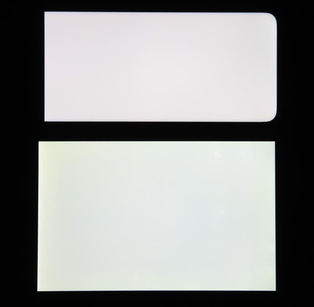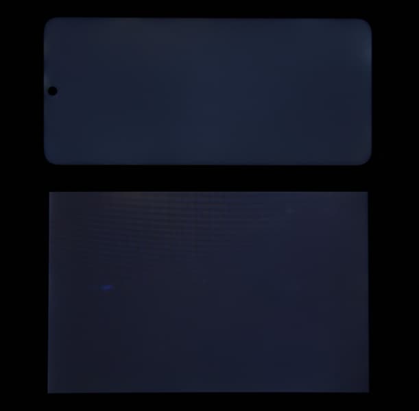 При перпендикулярном взгляде равномерность черного поля средняя (для наглядности яркость подсветки на смартфоне увеличена):