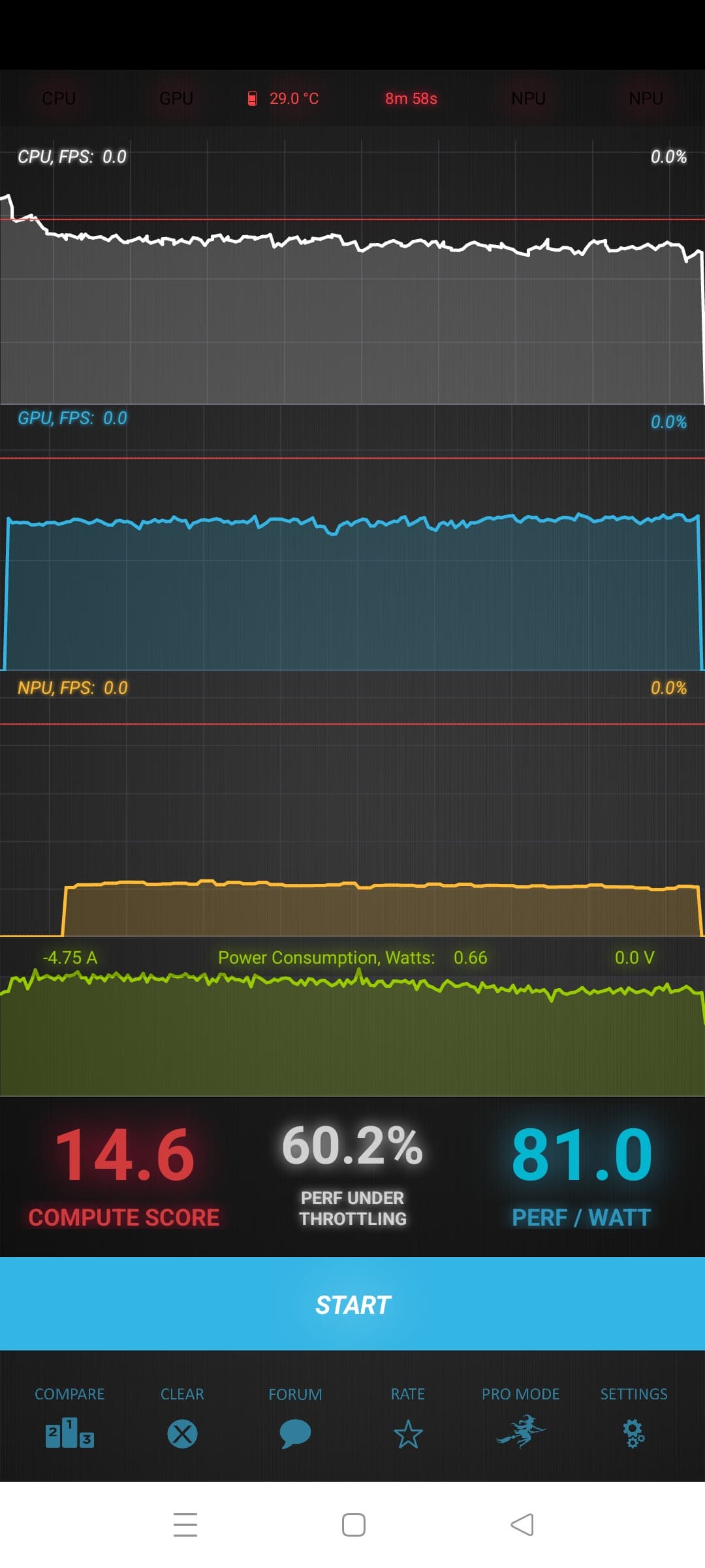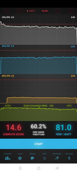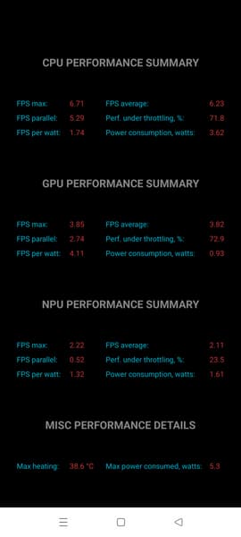 Тест на снижение производительности при нагреве мы проводим с помощью программы Burnout Benchmark, которая позволяет нагружать CPU, GPU и NPU: