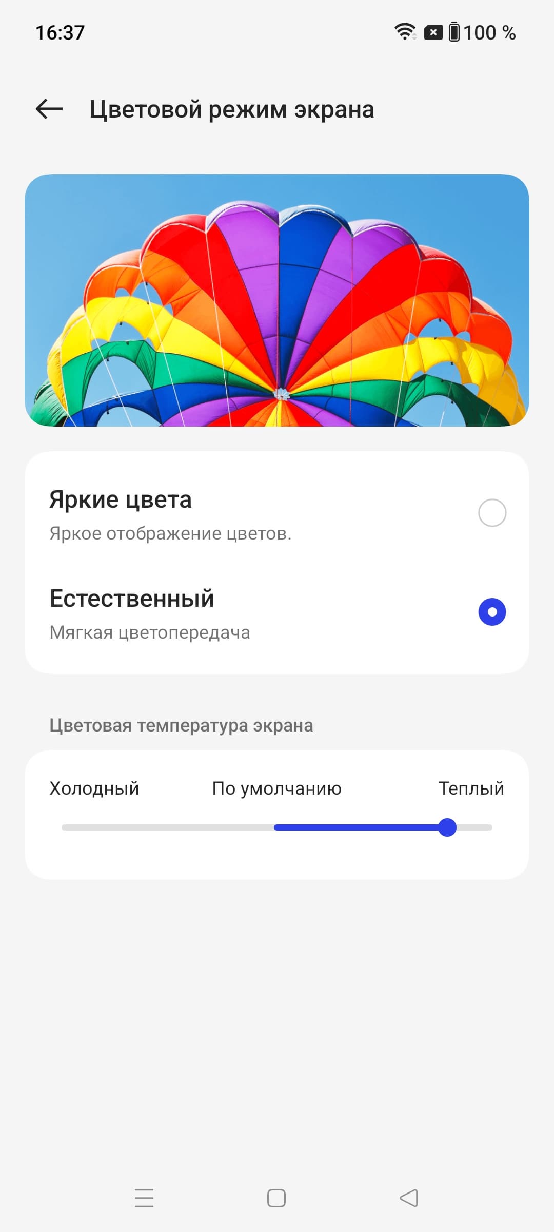 Фотография выше получена при активном профиле Естественный в настройках экрана, всего их два: