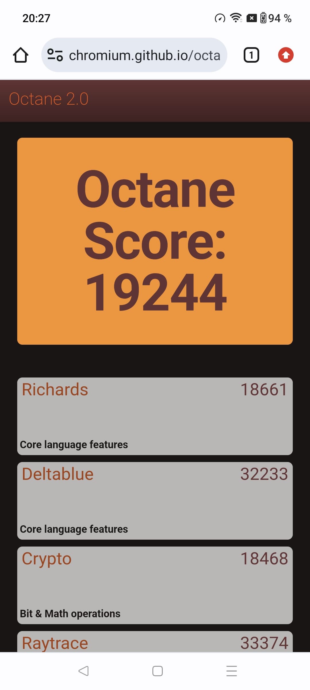 | Google Octane 2 (больше — лучше) | 19244 | 15705 | 30529 | 24923 | 24024 |