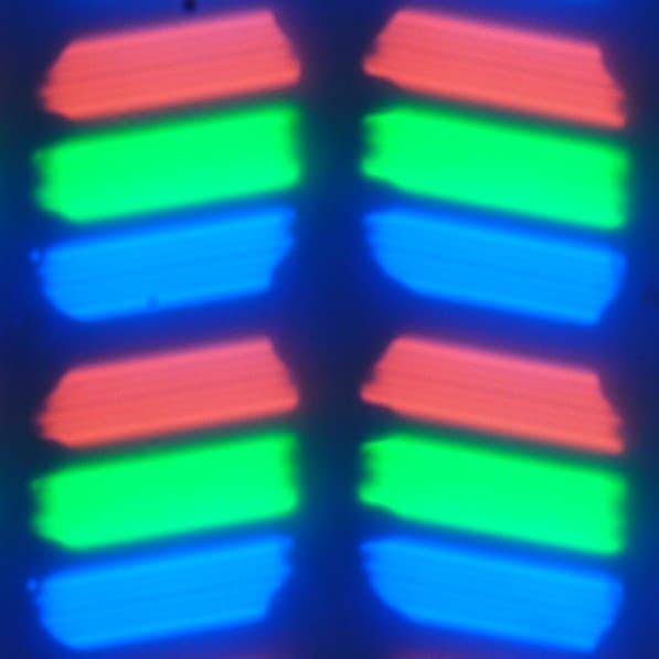 В данном смартфоне используется матрица типа IPS. Микрофотографии демонстрируют типичную для IPS структуру субпикселей: