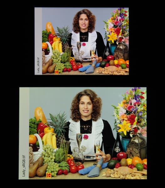 Отметим, что на экранах с широким цветовым охватом (без соответствующей коррекции) цвета́ обычных изображений, оптимизированных для устройств sRGB, выглядят неестественно насыщенными. Отсюда и рекомендация: в большинстве случаев смотреть кино, фотографии и все естественное лучше при выборе профиля Естественный.