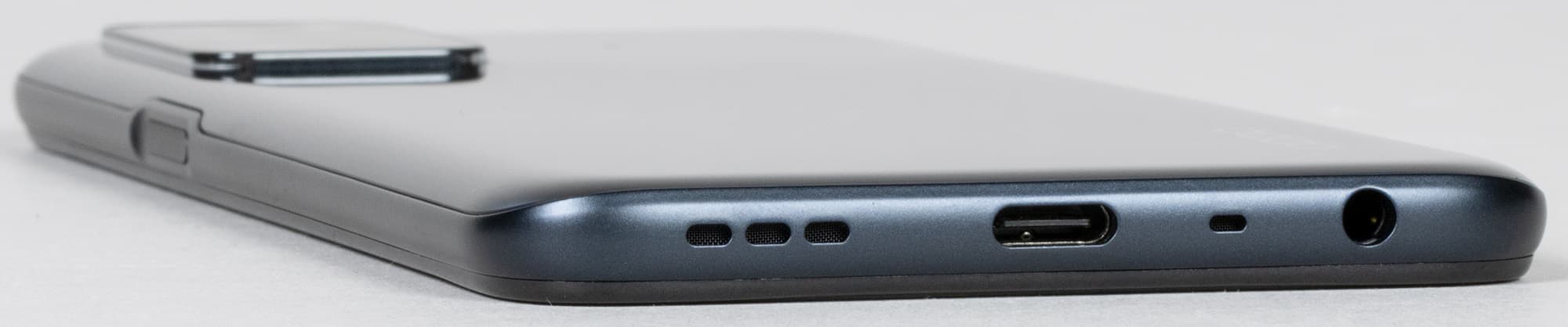 Сверху нет совсем ничего, даже вспомогательного микрофона. Внизу размещены 3,5-миллиметровый аудиовыход для наушников, динамик, микрофон и разъем USB Type-C.