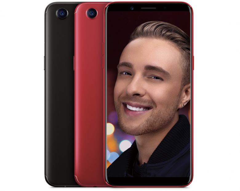 Oppo F5 представлен в продаже в трех цветовых решениях: черном, золотистом, а также красном, который будет доступен лишь для версии с объемом памяти 6/64 ГБ. Передняя панель у красного варианта остается черного цвета.