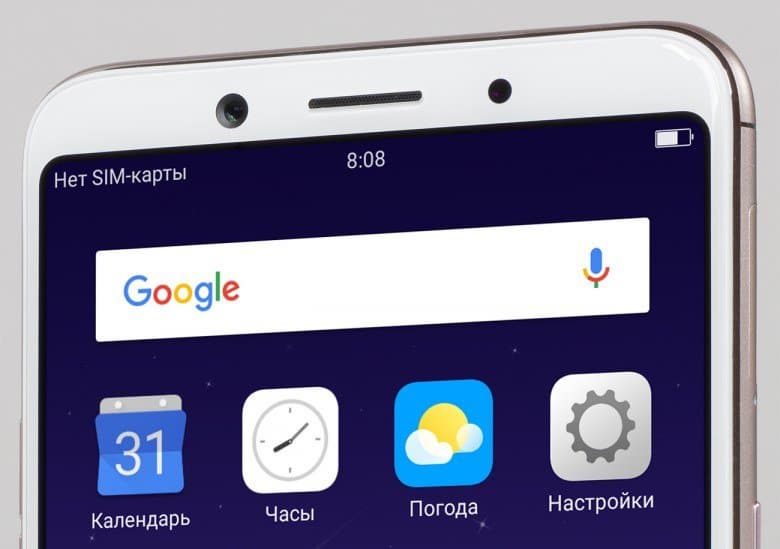 Тонкие линии на верхнем и нижнем торцах — это не привычные фигурные канавки для внешних антенн, а всего лишь элемент украшения, выточки для красоты. Куда на самом деле спрятали антенны, не совсем понятно — а быть может, материал корпуса вообще не металл, а какой-нибудь металлизированный пластик. По крайней мере, сам производитель нигде не утверждает прямо, что корпус у Oppo F5 цельнометаллический.