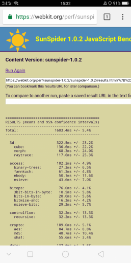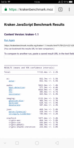 Что касается бенчмарков для оценки скорости движка javascript, то стоит всегда делать скидку на то, что в них результаты существенно зависят от браузера, в котором запускаются, так что сравнение может быть истинно корректным только на одинаковых ОС и браузерах, а такая возможность имеется при тестировании не всегда. В случае с ОС Android мы всегда стараемся использовать Google Chrome.