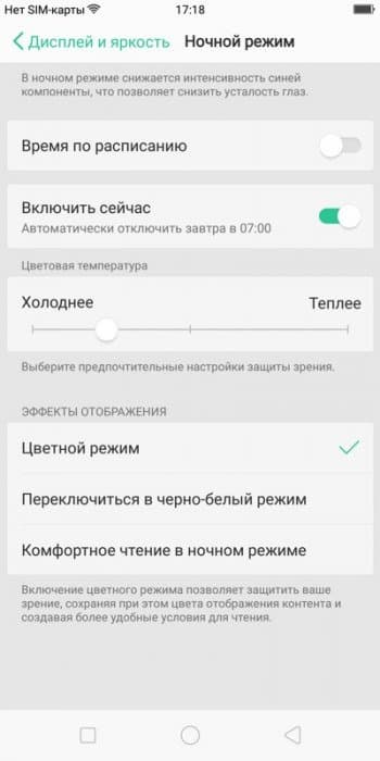 В итоге цвета имеют естественную насыщенность. В этом устройстве есть возможность скорректировать цветовой баланс с помощью ползунка регулировки цветовой температуры в настройках ночного режима (конечно, без глупостей насчет усталости глаз и защиты зрения в описании не обошлось):
