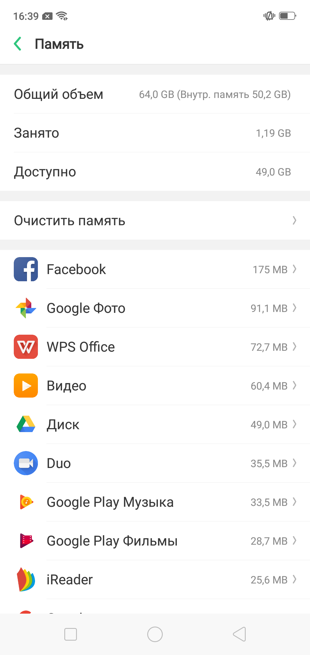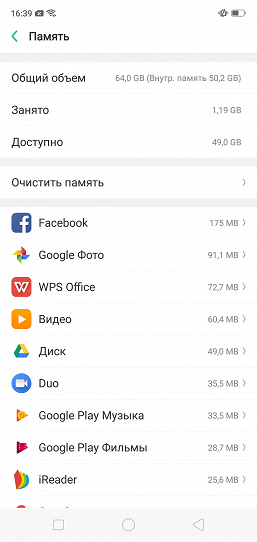 - Оперативная память (RAM) 4 ГБ, внутренняя память 64 ГБ