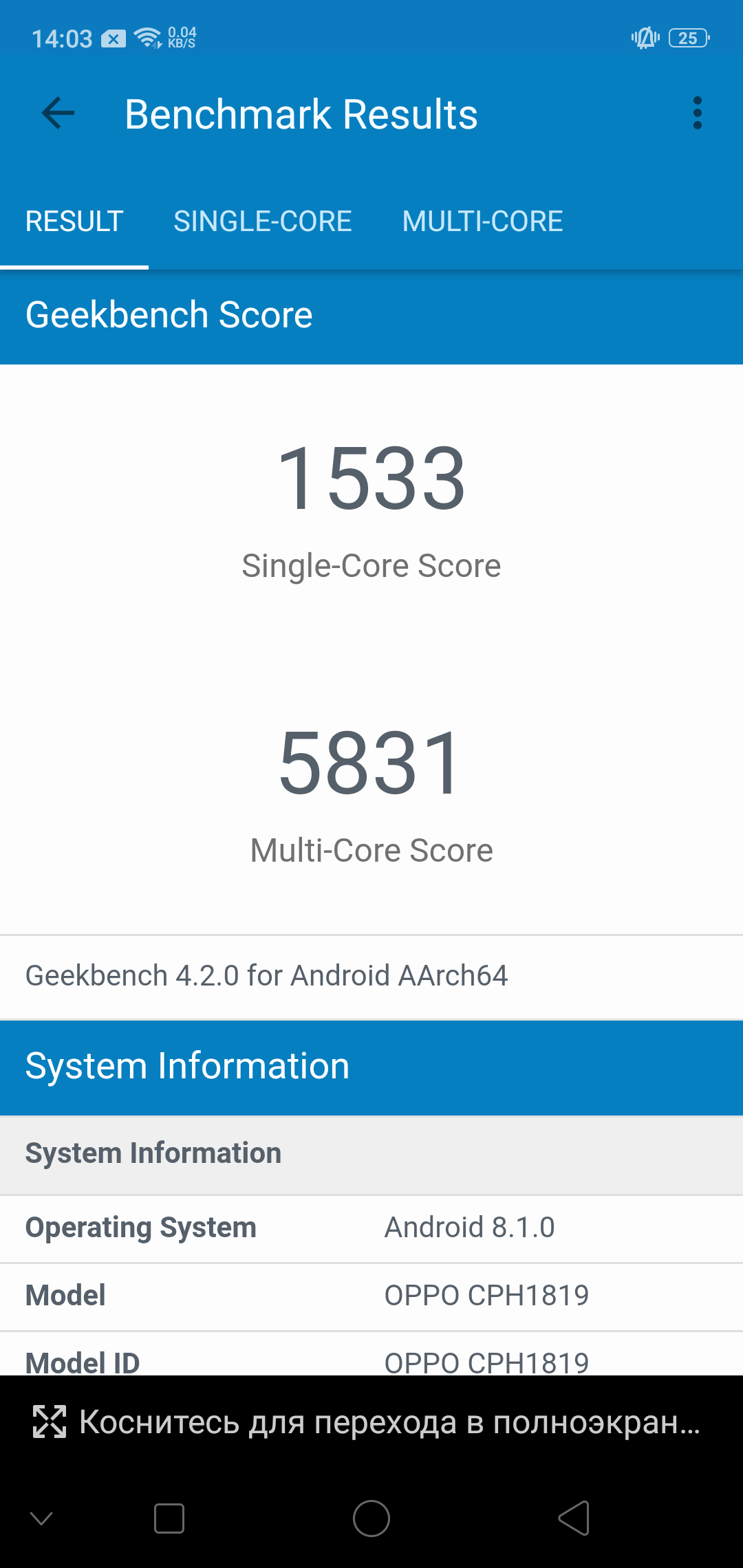 Несъемная аккумуляторная батарея, установленная в Oppo F7, имеет емкость в 3400 мА·ч. Это немало, но и не так уж много по современным меркам. Между тем, герой обзора демонстрирует выдающийся уровень автономности во всех сценариях работы.