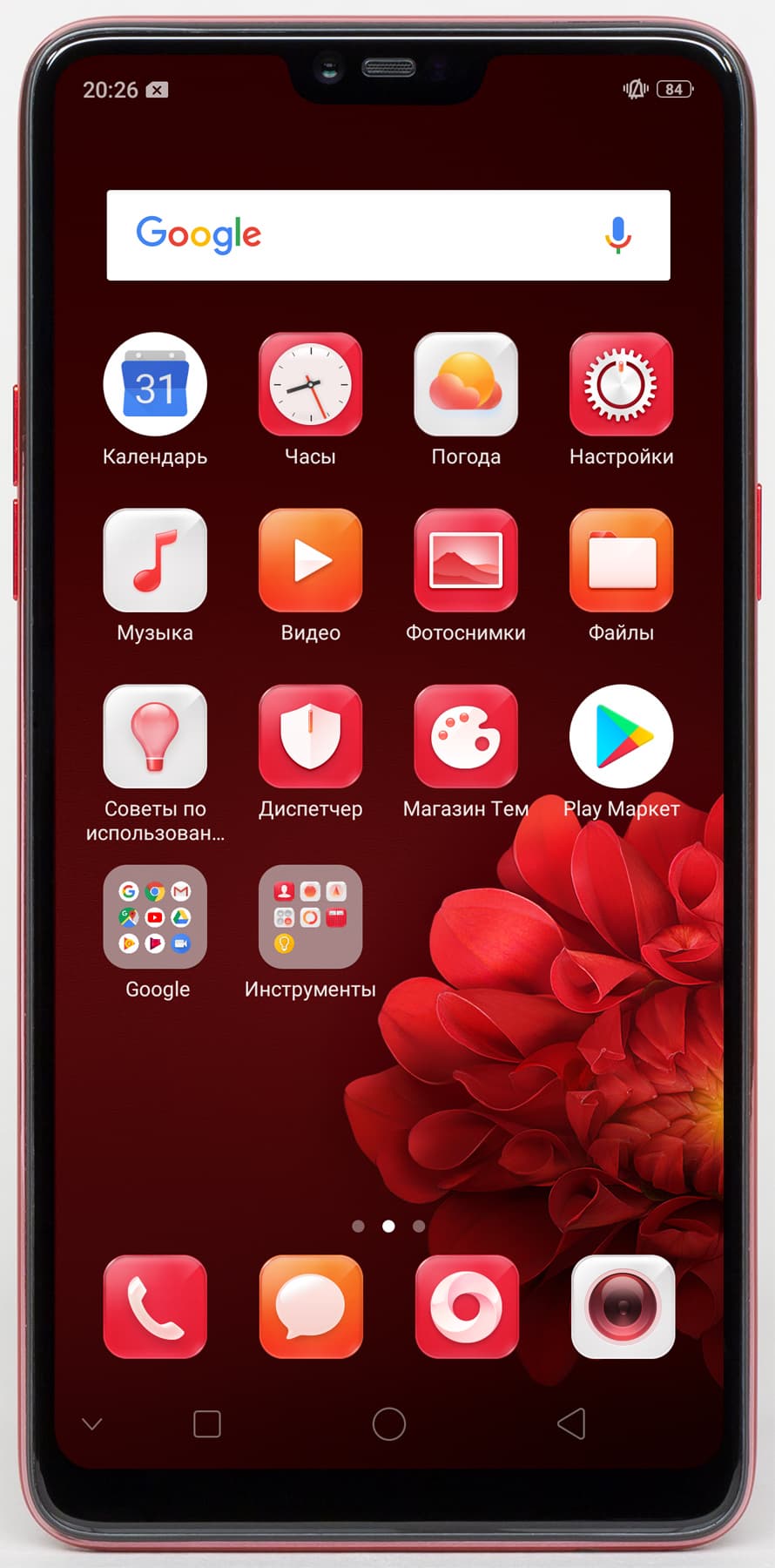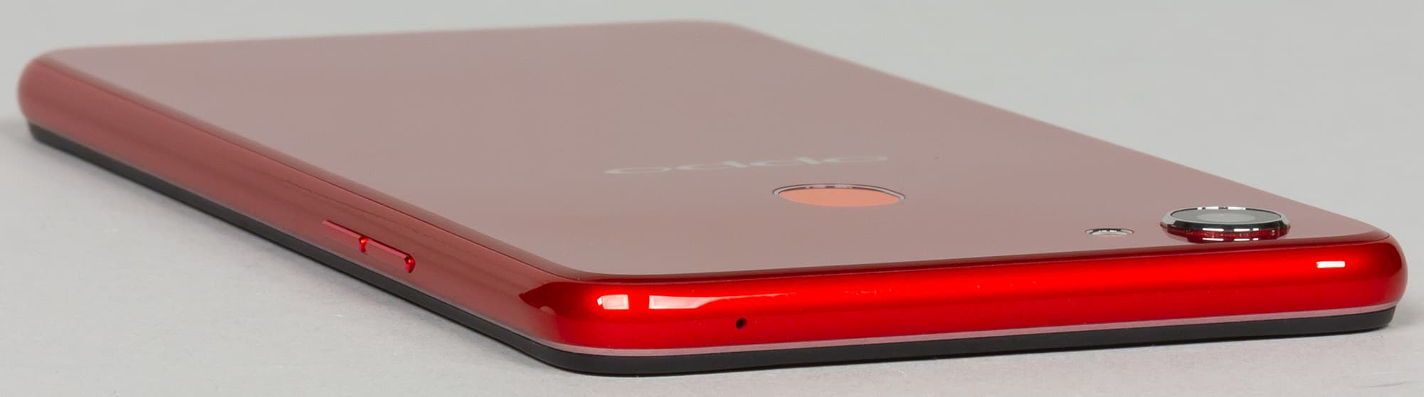 В продажу Oppo F7 поступает в трех цветовых исполнениях, причем, как и Sony, Oppo решила придумать этим окрасам особые названия: «Красное солнце», «Серебристое сияние» и «Черная звезда». У красного и серого вариантов подложка под задним стеклом просто зеркальная, а у черного варианта — еще и с геометрическим рисунком, который в лучах солнца играет так, будто задняя панель у смартфона объемная.