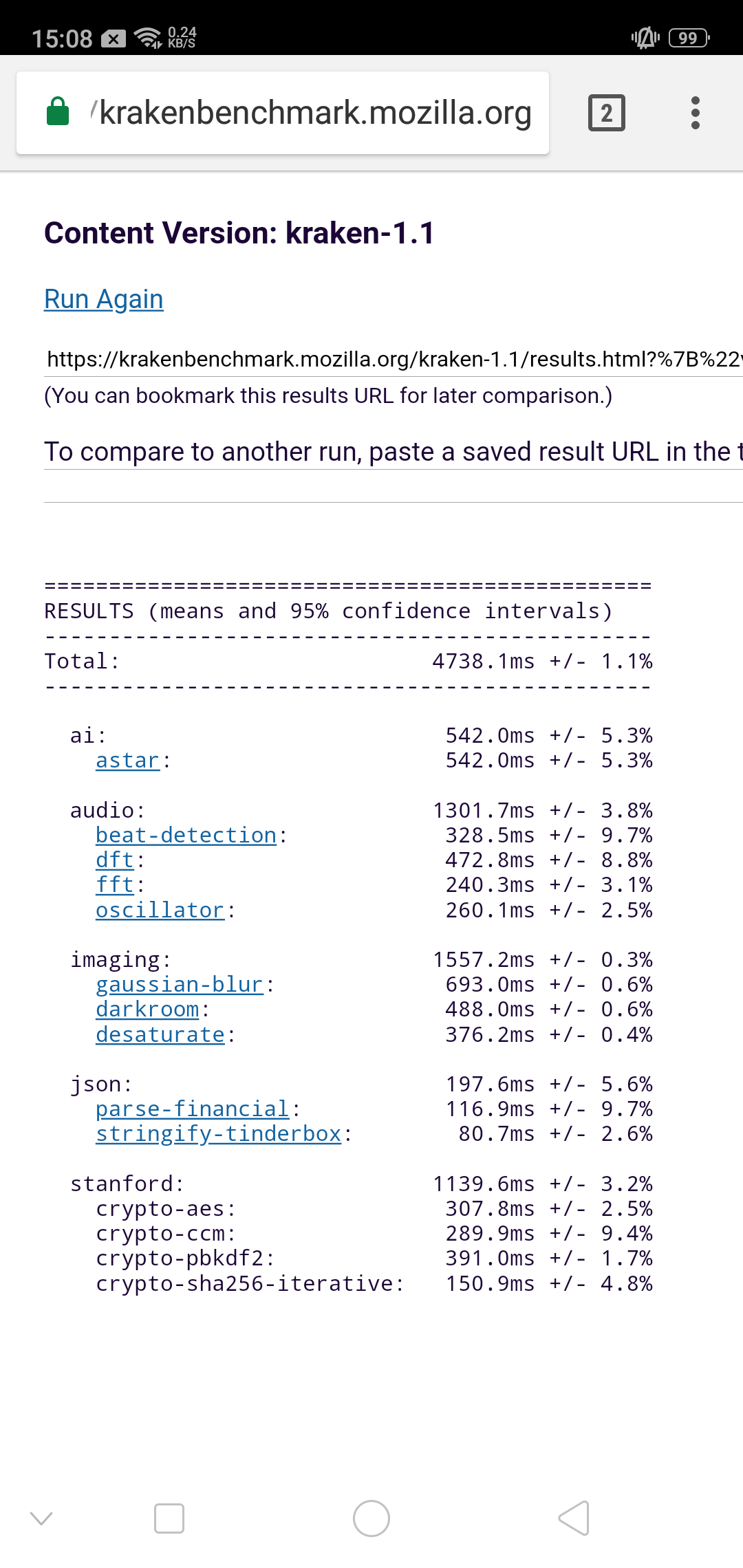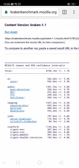| Mozilla Kraken (мс, меньше — лучше) | 4738 | 17080 | 14182 | 4463 | 9666 |