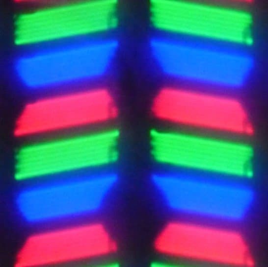 В данном смартфоне используется матрица типа IPS. Микрофотографии демонстрируют типичную для IPS структуру субпикселей: