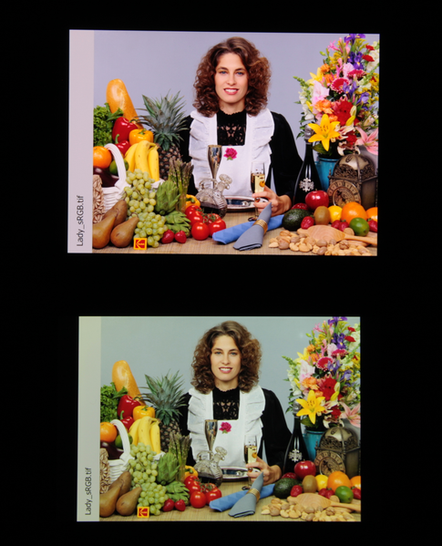 Отметим, что на экранах с широким цветовым охватом без соответствующей коррекции цвета обычных изображений, оптимизированных для устройств sRGB, выглядят неестественно насыщенными. Отсюда и рекомендация: в большинстве случаев смотреть кино, фотографии и все естественное лучше при выборе профиля Pro. Профиль Яркий уместен при просмотре материала с охватом DCI-P3, принятым в цифровом кинематографе, но в быту встречающимся редко.