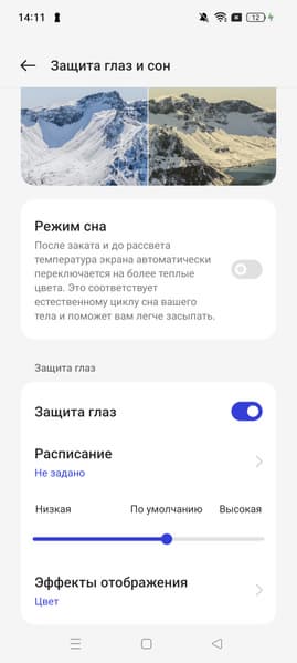 Также в настройках можно уменьшить интенсивность синей компоненты.