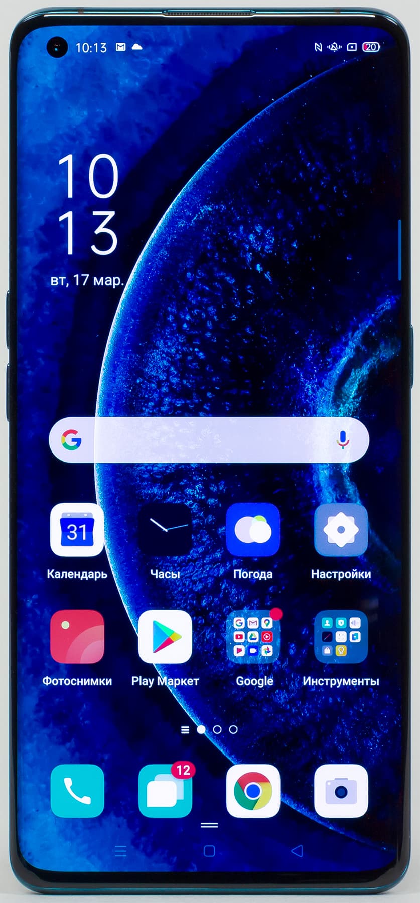 Экран у Oppo Find X2 заметно темнее (яркость по фотографиям 105 против 116 у Nexus 7) и не имеет выраженного оттенка. Двоение отраженных объектов в экране Oppo Find X2 очень слабое, это свидетельствует о том, что между слоями экрана нет воздушного промежутка. За счет меньшего числа границ (типа стекло/воздух) с сильно различающимися коэффициентами преломления такие экраны лучше смотрятся в условиях интенсивной внешней засветки, но вот их ремонт в случае потрескавшегося внешнего стекла обходится гораздо дороже, так как менять приходится экран целиком. На внешней поверхности экрана есть специальное олеофобное (жироотталкивающее) покрытие (по эффективности заметно лучше, чем у Nexus 7), поэтому следы от пальцев удаляются легче, а появляются с меньшей скоростью, чем в случае обычного стекла.