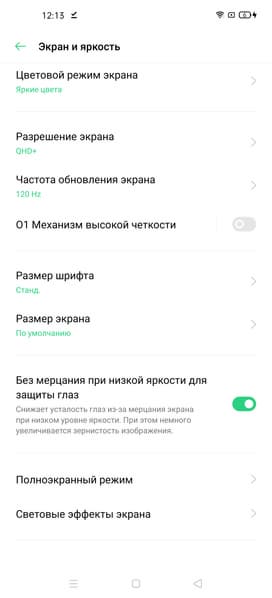 В настройках экрана можно включить режим с повышенной до 120 Гц частотой обновления: