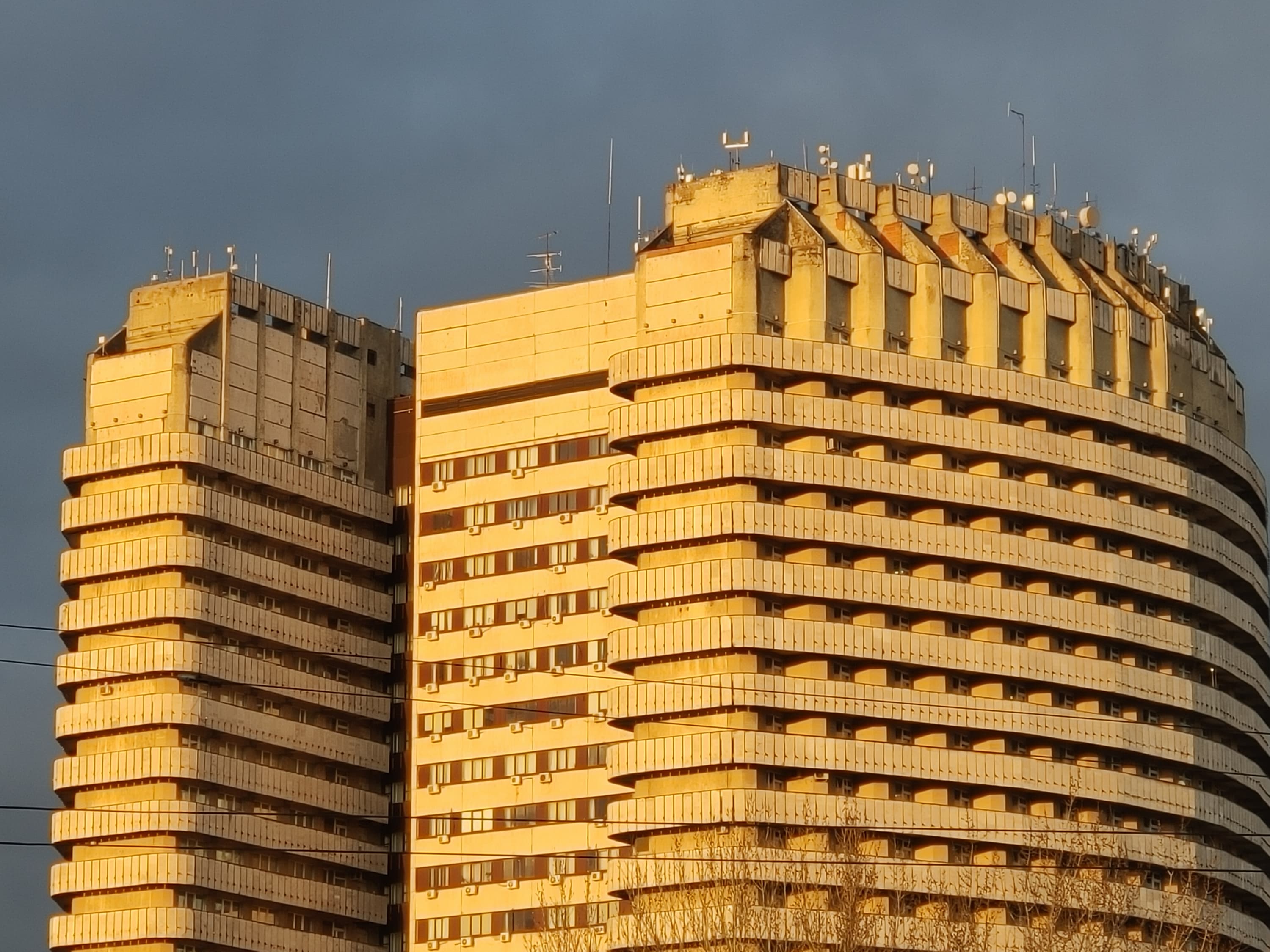 Специальный ночной режим реализован для всех трех камер, но лучше всего снимать, конечно, на основной. Освещенные объекты получаются очень неплохо, особенно если уменьшить снимок, но приличной детализации ночью не получить — а если попытаться добиться ее, детали будут перекрыты толстым слоем шумов.