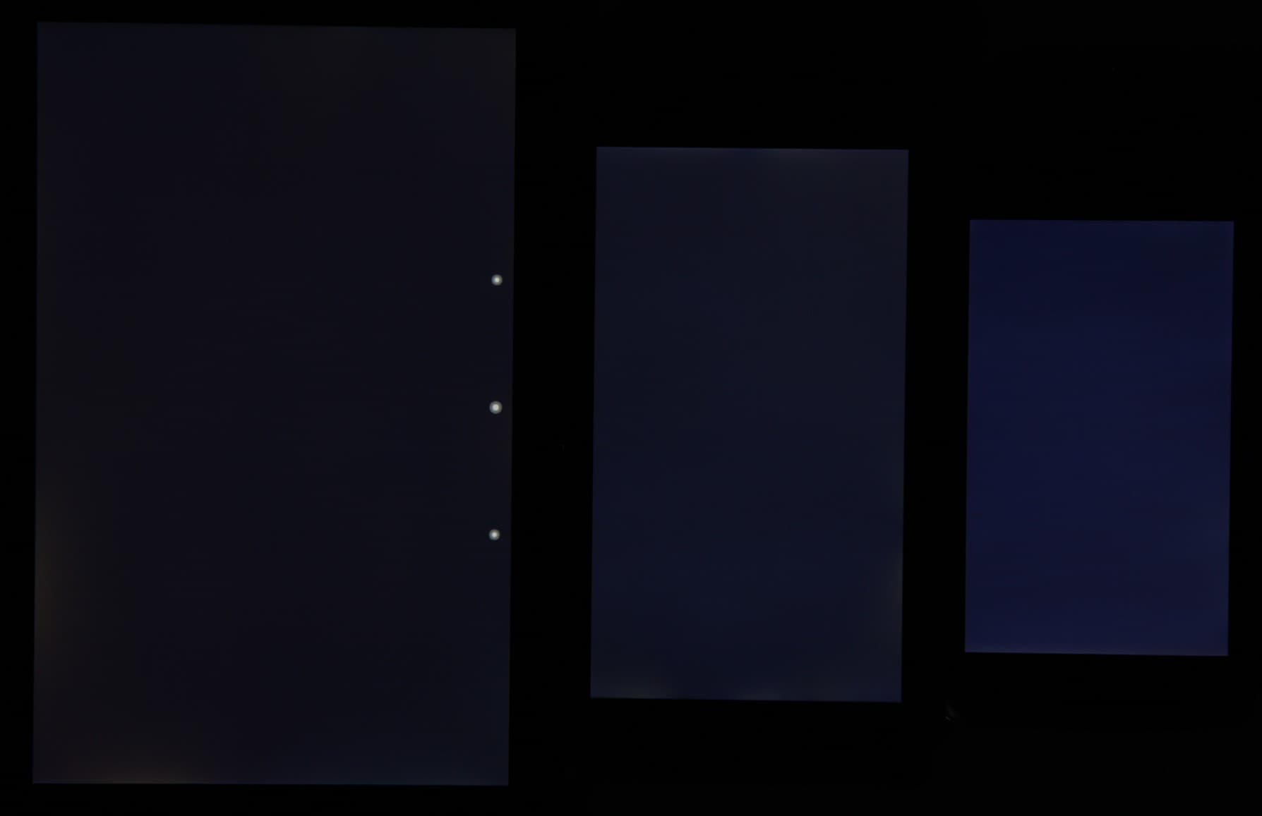 При перпендикулярном взгляде равномерность черного поля неидеальная, так как вдоль одного края экрана есть полоска с повышенной яркостью черного: