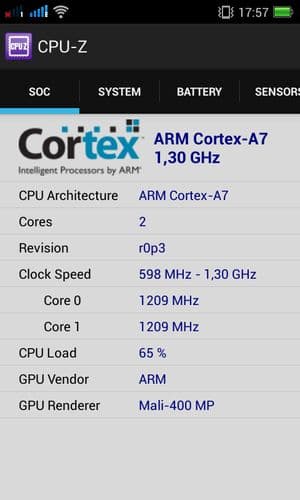 - SoC MediaTek MT6572, 1,2 ГГц, 2 ядра ARM Cortex-A7