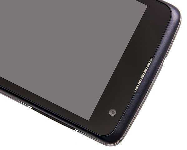Передняя панель почти полностью, за исключением пластикового покатого бокового ободка, покрыта защитным стеклом, устойчивым к появлению царапин. Опять же, разработчики не стали мелочиться и даже несмотря на дешевизну устройства оборудовали его настоящим защитным стеклом японской фирмы Dragontrail, что для столь бюджетной малютки является достаточно солидной деталью «гардероба».