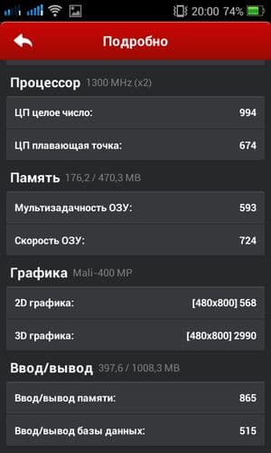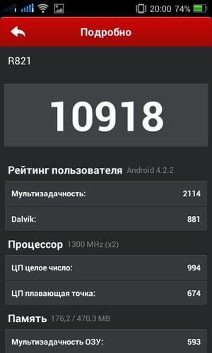 | AnTuTu 4.х (больше — лучше) | 10918 | 10222 | 9506 | 10674 |