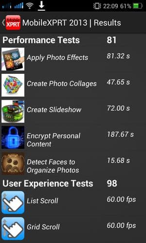 | Mobile XPRT 2013 (больше — лучше) | 81/98 | 97/91 | 71/52 | 86/97 |