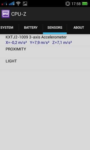 Яркость дисплея имеет как ручную, так и автоматическую регулировку, последняя основывается на работе датчика освещения. Технология мультитач позволяет одновременно обрабатывать до 5 прикосновений — проверено программой AnTuTu Tester. Имеется у смартфона и датчик приближения, который блокирует экран при поднесении смартфона к уху.
