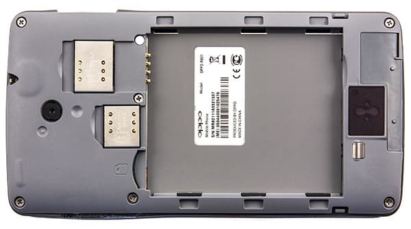 SIM-карты здесь используются сразу двух форматов: Mini- и Micro-SIM, карточки держатся за счет силы трения в обыкновенных щелевых пазах без подпружиненных механизмов захвата. По характеристикам оба слота равнозначны, оба способны работать в режиме 3G, так что физической перестановки карт из слота в слот здесь не потребуется. Карточка памяти используется формата microSD, официально поддерживаются карты объемом до 32 ГБ. Батарея подпирает собой снизу все три карты, так что о горячей их замене не может быть и речи. Сама батарея является литий-ионной, имеет емкость 1700 мА·ч и маркировку BLT029.