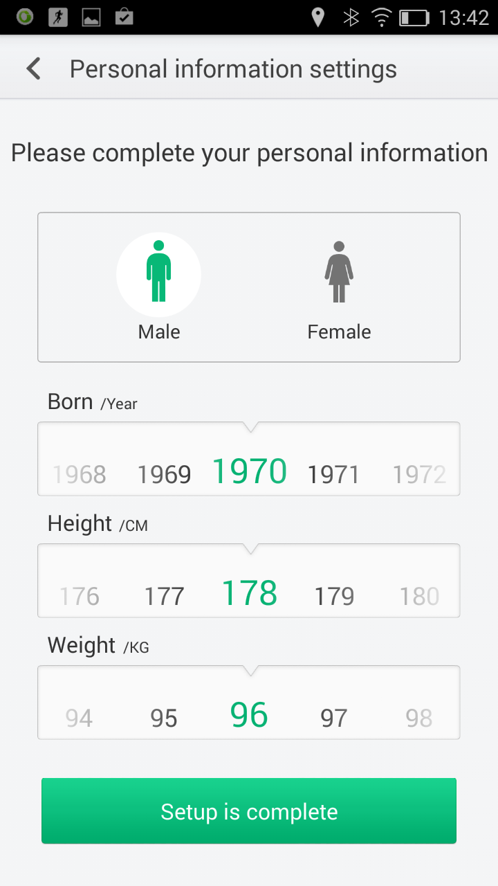 К счастью, вход с помощью Weibo не вызвал у нас никаких проблем. Итак, что же представляет собой приложение Oppo O-Band? Прежде всего, нам предлагают ввести свои личные данные данные, а также указать желаемую сложность целей.