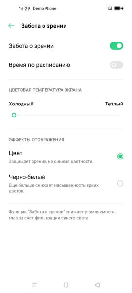 В этом устройстве есть возможность скорректировать цветовой баланс с помощью регулировки оттенка настройкой Цветовая температура экрана:
