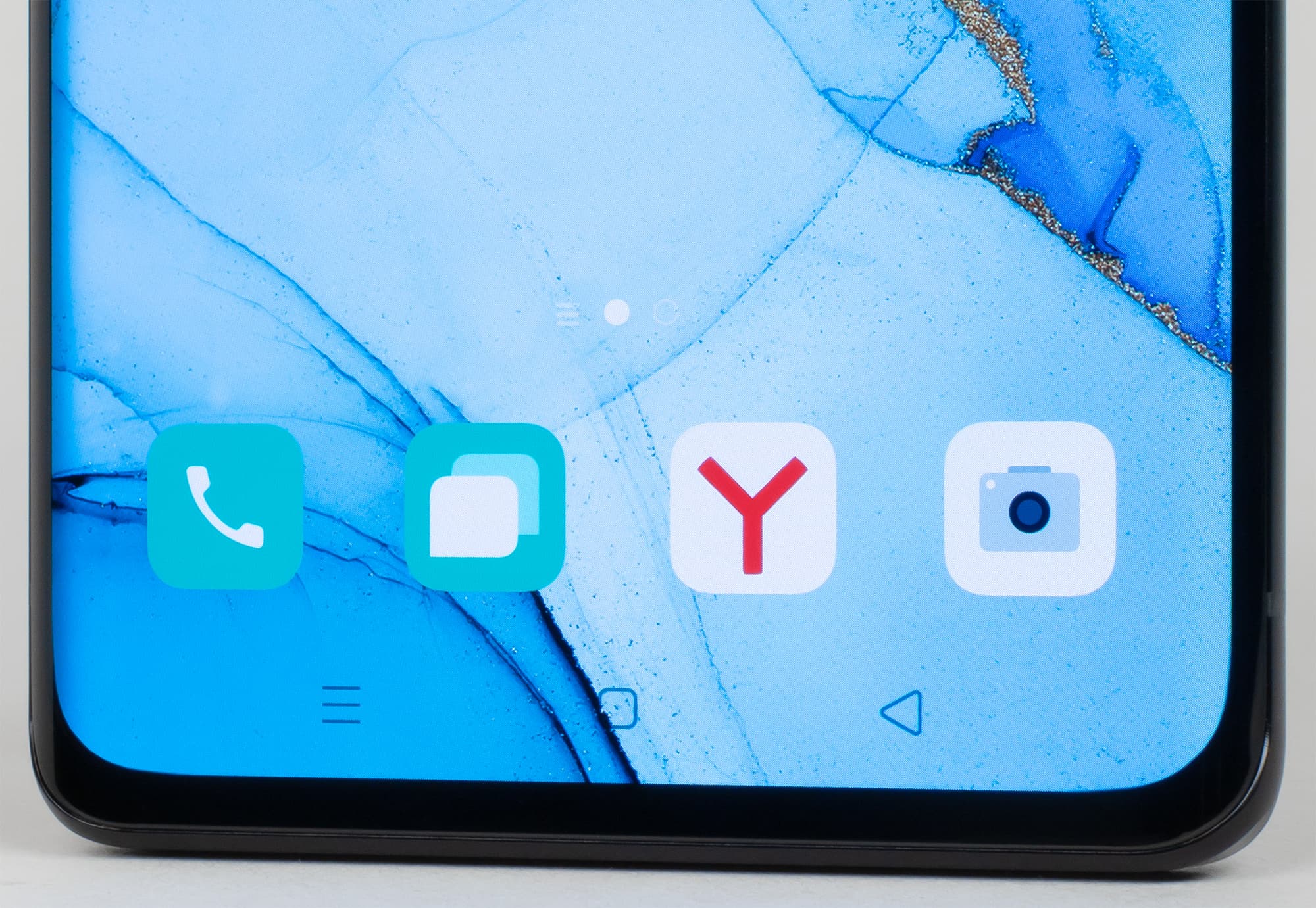Экран у Oppo Reno3 Pro заметно темнее (яркость по фотографиям 103 против 114 у Nexus 7) и не имеет выраженного оттенка. Двоение отраженных объектов в экране Oppo Reno3 Pro очень слабое, это свидетельствует о том, что между слоями экрана нет воздушного промежутка. За счет меньшего числа границ (типа стекло/воздух) с сильно различающимися коэффициентами преломления такие экраны лучше смотрятся в условиях интенсивной внешней засветки, но вот их ремонт в случае потрескавшегося внешнего стекла обходится гораздо дороже, так как менять приходится экран целиком. На внешней поверхности экрана есть специальное олеофобное (жироотталкивающее) покрытие (по эффективности заметно лучше, чем у Nexus 7), поэтому следы от пальцев удаляются легче, а появляются с меньшей скоростью, чем в случае обычного стекла.