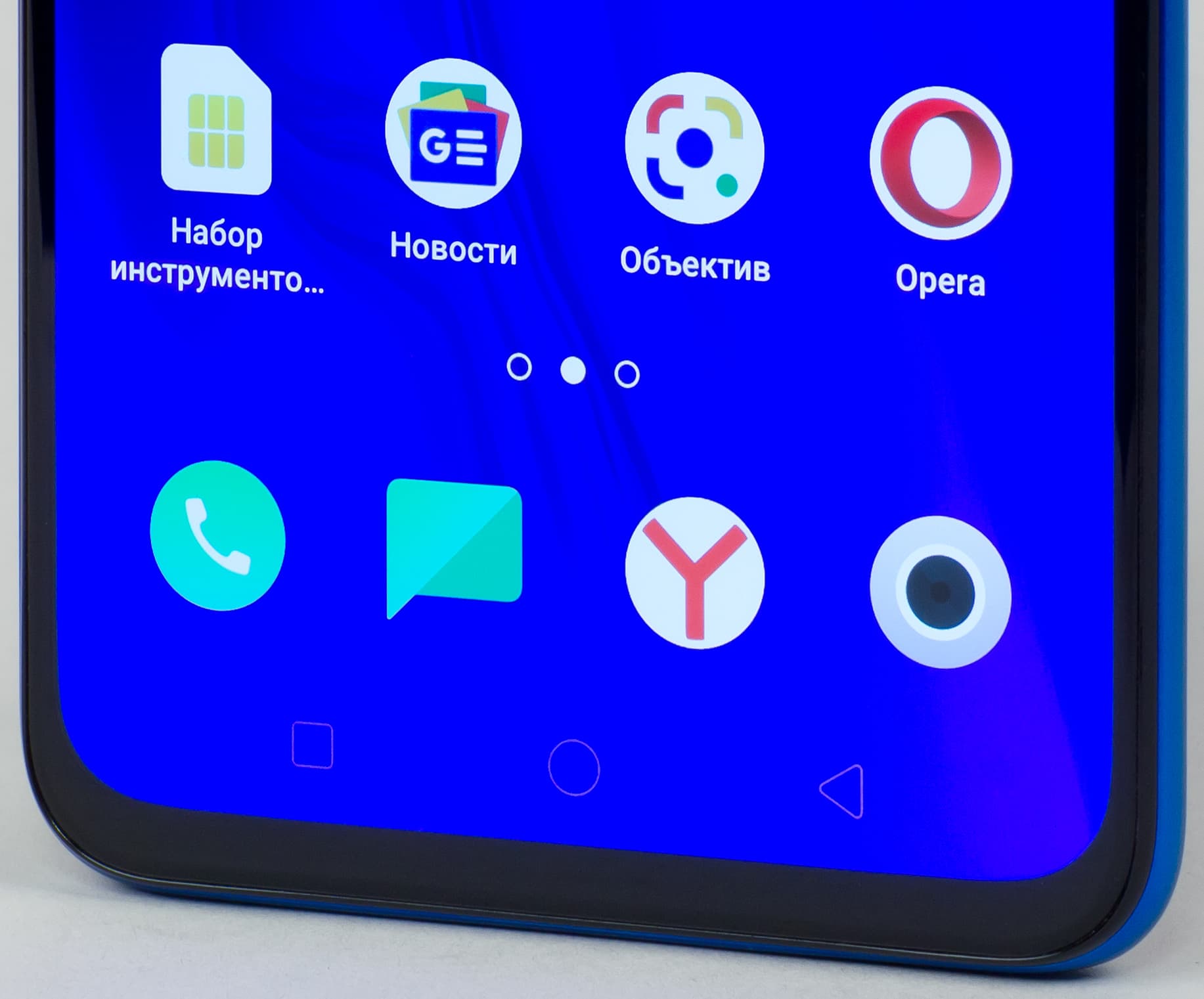 Экран у Oppo Reno Z лишь немного светлее (яркость по фотографиям 118 против 117 у Nexus 7). Двоение отраженных объектов в экране Oppo Reno очень слабое, это свидетельствует о том, что между слоями экрана нет воздушного промежутка. За счет меньшего числа границ (типа стекло/воздух) с сильно различающимися коэффициентами преломления такие экраны лучше смотрятся в условиях интенсивной внешней засветки, но вот их ремонт в случае потрескавшегося внешнего стекла обходится гораздо дороже, так как менять приходится экран целиком. На внешней поверхности экрана есть специальное олеофобное (жироотталкивающее) покрытие (по эффективности заметно лучше, чем у Nexus 7), поэтому следы от пальцев удаляются легче, а появляются с меньшей скоростью, чем в случае обычного стекла.