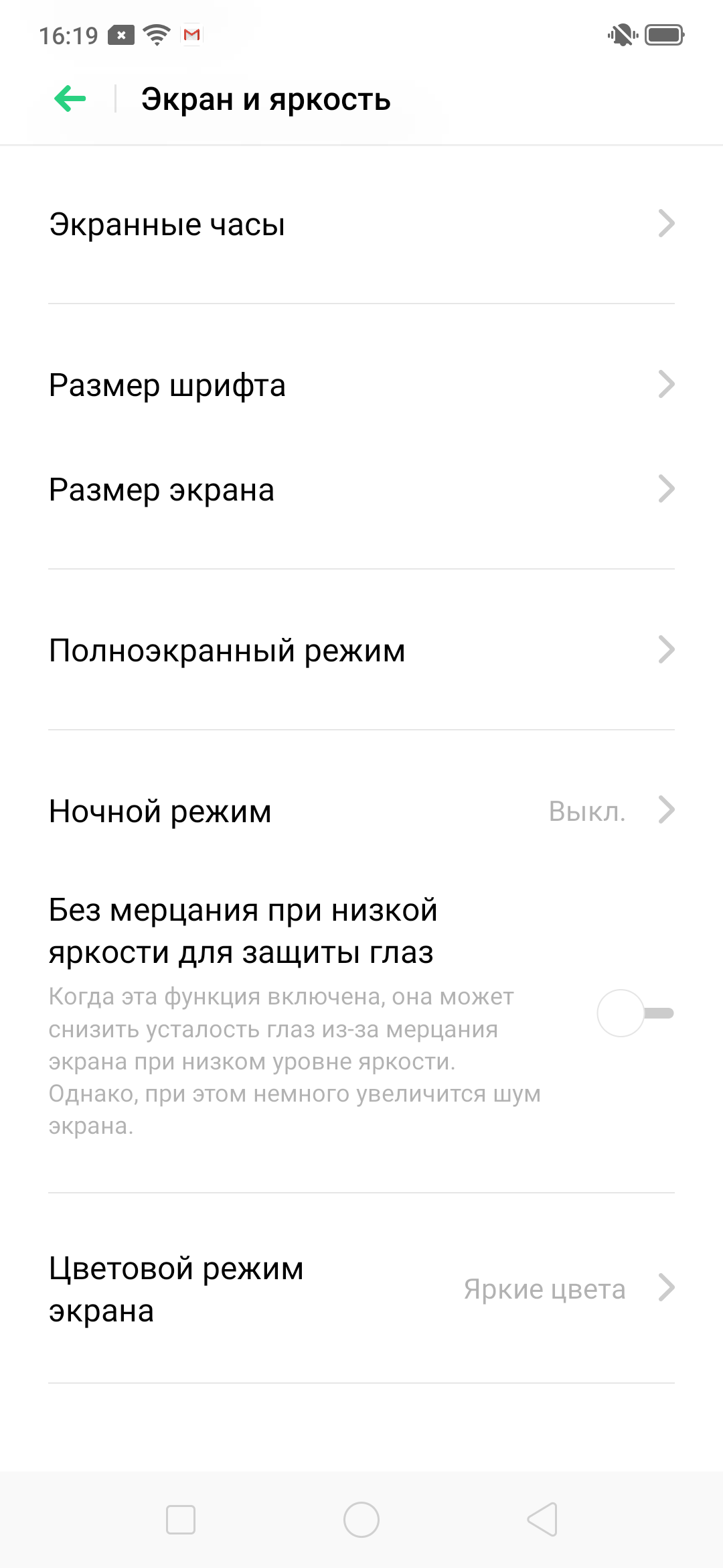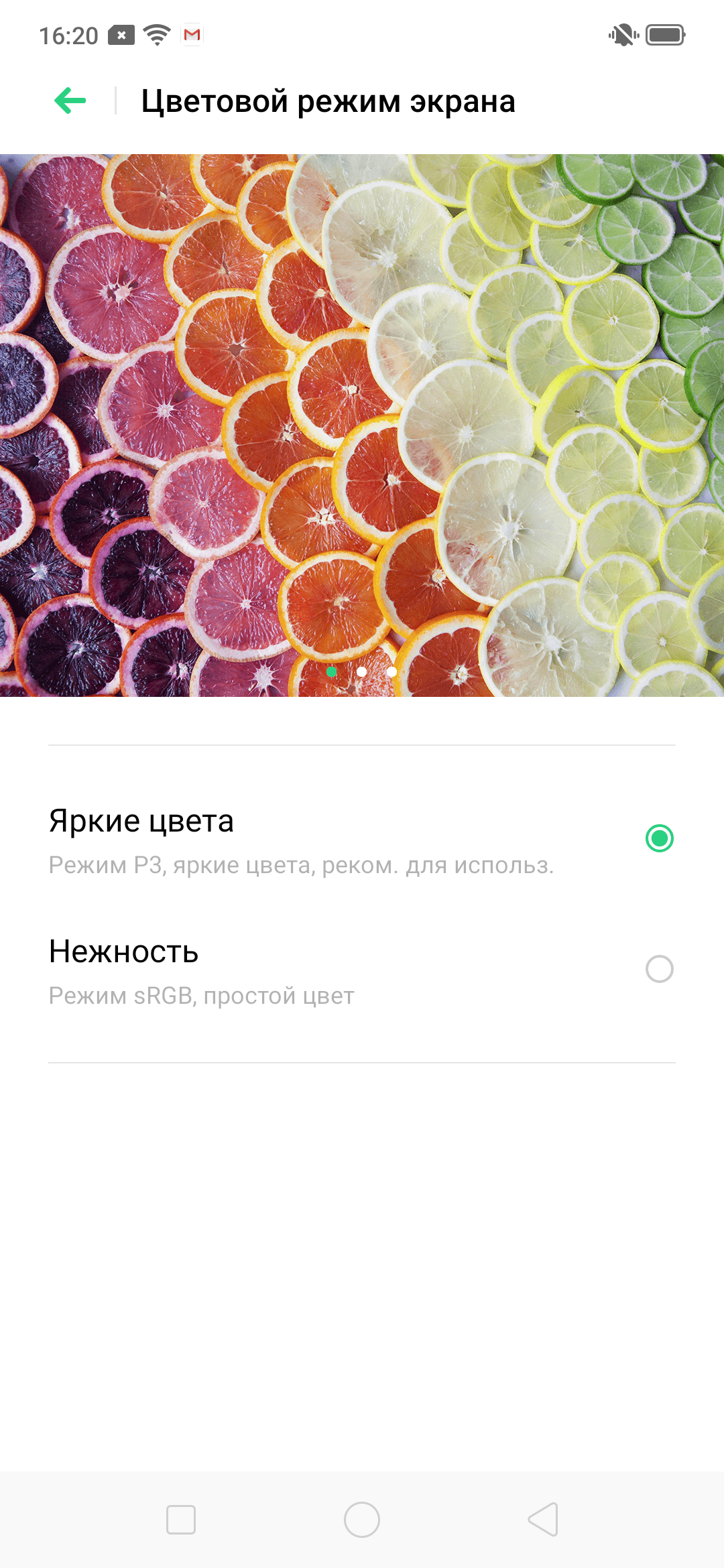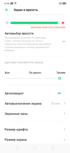Фотография выше получена для профиля Яркие цвета в настройках экрана, всего их два (спасибо производителю, что не стали запутывать пользователя кучей бесполезных профилей):