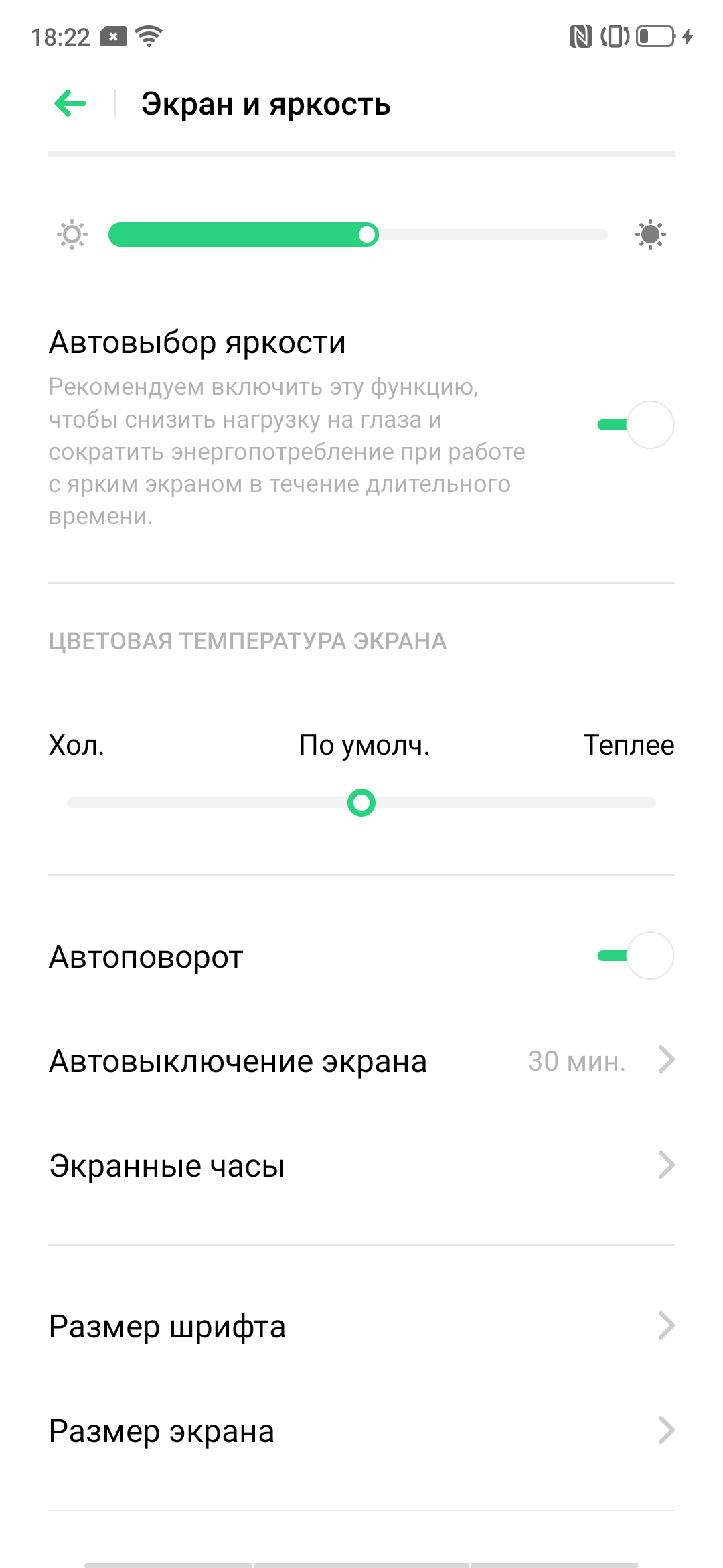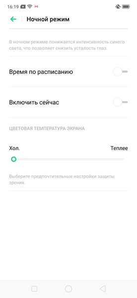 В этом устройстве есть возможность скорректировать цветовой баланс с помощью регулировки оттенка настройкой Цветовая температура экрана: