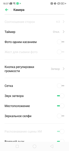 С режимами видеосъемки в интерфейсе камеры ColorOS откровенно перемудрили. Вместо обычного списка всех режимов разрешение и количество кадров в секунду зачем-то разнесли в совершенно разные места, так что выбирать между 4К и 1080p нужно прямо на экране видоискателя, а менять 30 fps на 60 придется в отдельном разделе настроек, что совершенно неудобно. Камера может снимать в максимальном разрешении 3840×2160 при 30 fps, также есть вариант съемки в 1080р с 60 или 30 fps. Выбрать кодек HEVC для записи роликов здесь нельзя. Есть возможность замедленной съемки.