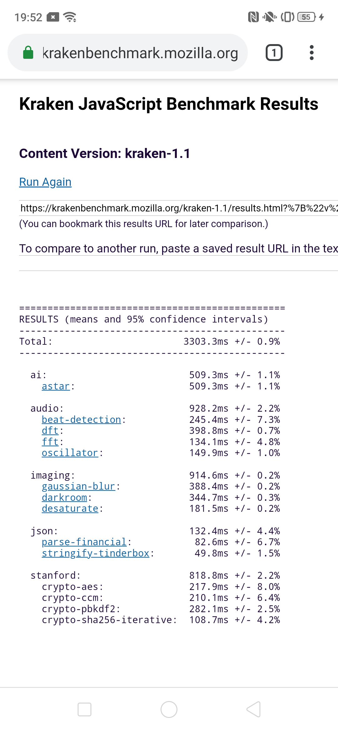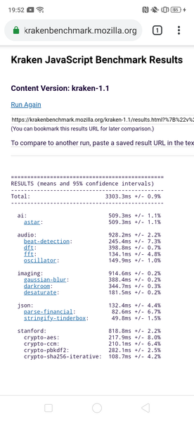| Mozilla Kraken (мс, меньше — лучше) | 3303 | 2670 | 2859 | 3905 | 2056 |