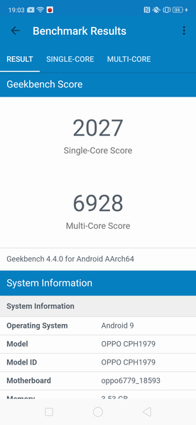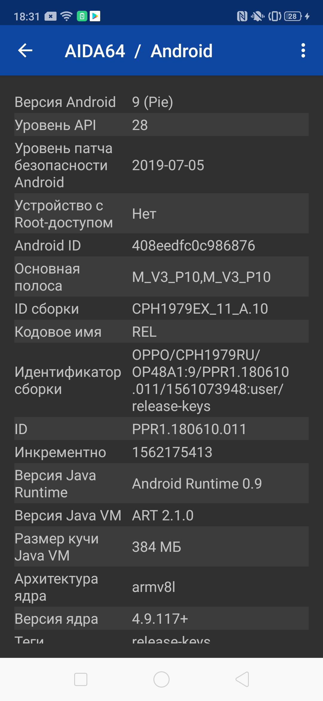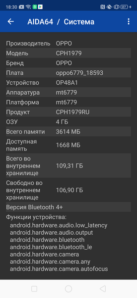 - Операционная система Android 9.0 (Pie); ColorOS 6