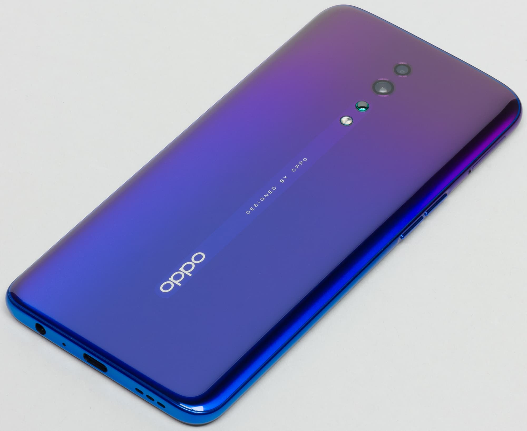 Oppo Reno Z выпускается в двух цветах: «Черный графит» и «Пурпурный рассвет». Полноценной защиты от пыли и влаги корпус смартфона не получил.