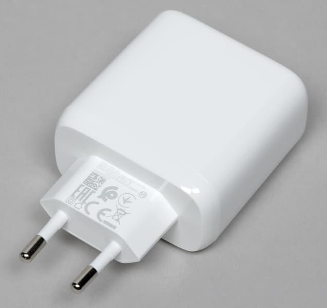 В комплекте со смартфоном идет защитный чехол, проводная гарнитура, соединительный кабель USB-C и сетевое зарядное устройство с выходной мощностью 65 Вт (но смартфон может заряжаться с мощностью не более 50 Вт).