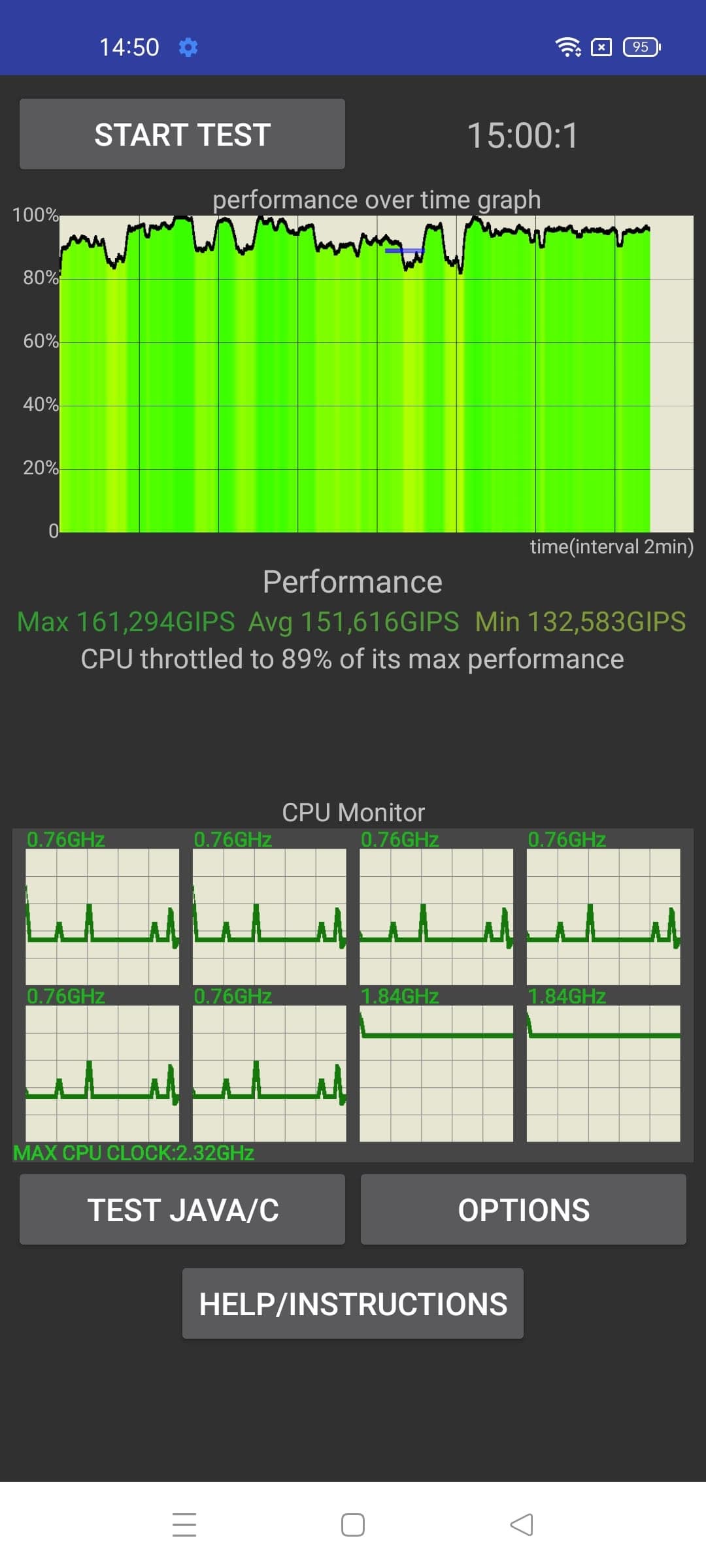 Тестирование традиционно проводилось на обычном уровне энергопотребления без использования функций энергосбережения, хотя таковые в аппарате имеются. Условия тестирования: выставлен минимальный комфортный уровень яркости (примерно 100 кд/м²). Тесты: беспрерывное чтение в программе Moon+ Reader (со стандартной, светлой темой); беспрерывный просмотр видео в HD-качестве (720р) через домашнюю сеть Wi-Fi; игра Injustice 2 с автонастройками графики.