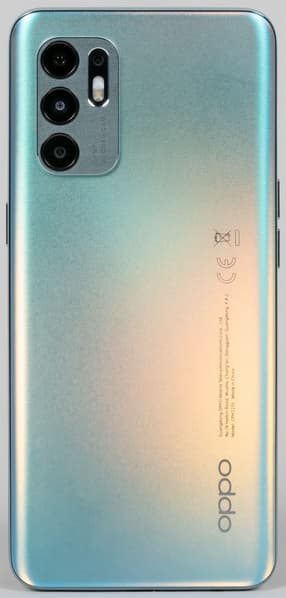 Смартфон Oppo Reno6 выпускается в двух цветовых вариантах: черном и «лазурном». Корпус не получил полноценной защиты от воды и пыли.